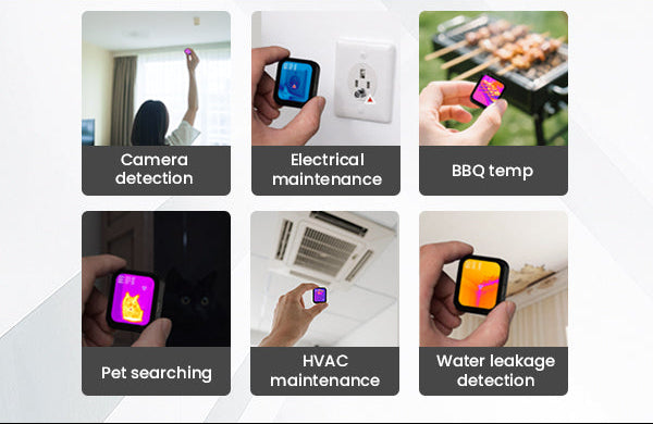 • Multi-Purpose Utility: From detecting hidden cameras and troubleshooting HVAC issues to finding winter drafts around windows and doors, locating pets at night, or checking BBQ heat —this compact thermal camera handles it all.