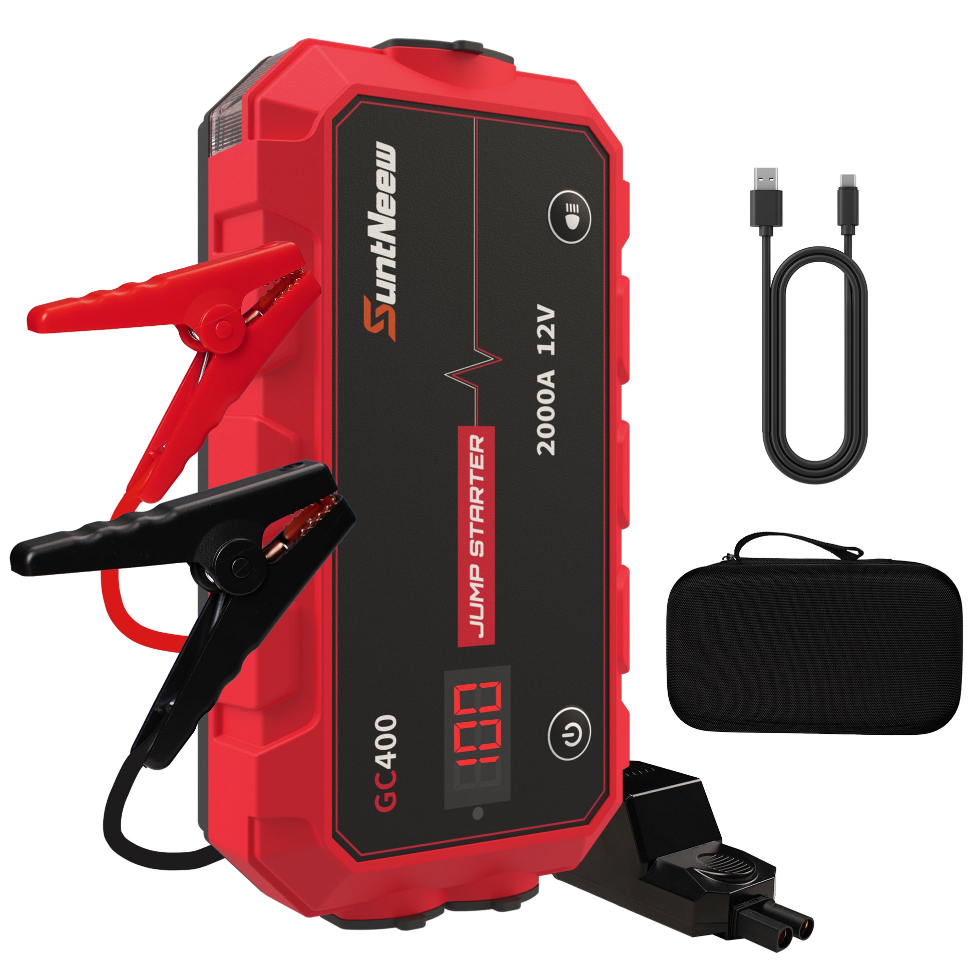 20000mAh Car Jump Starter, 1000A Start / 2000A Peak, 12V Portable Battery Booster with Smart EC5 Clamps, LED Display, PD 18W USB Fast Charging, EVA Case