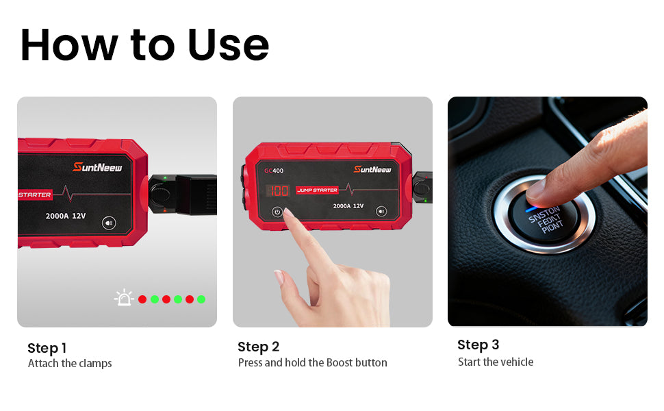 Powerful 1000A Start & 2000A Peak Output: Equipped with a high-discharge cell pack, this jump starter delivers 1000A for 1 second and 2000A peak (0.1s), enabling reliable starts for most 12V gasoline and diesel vehicles.