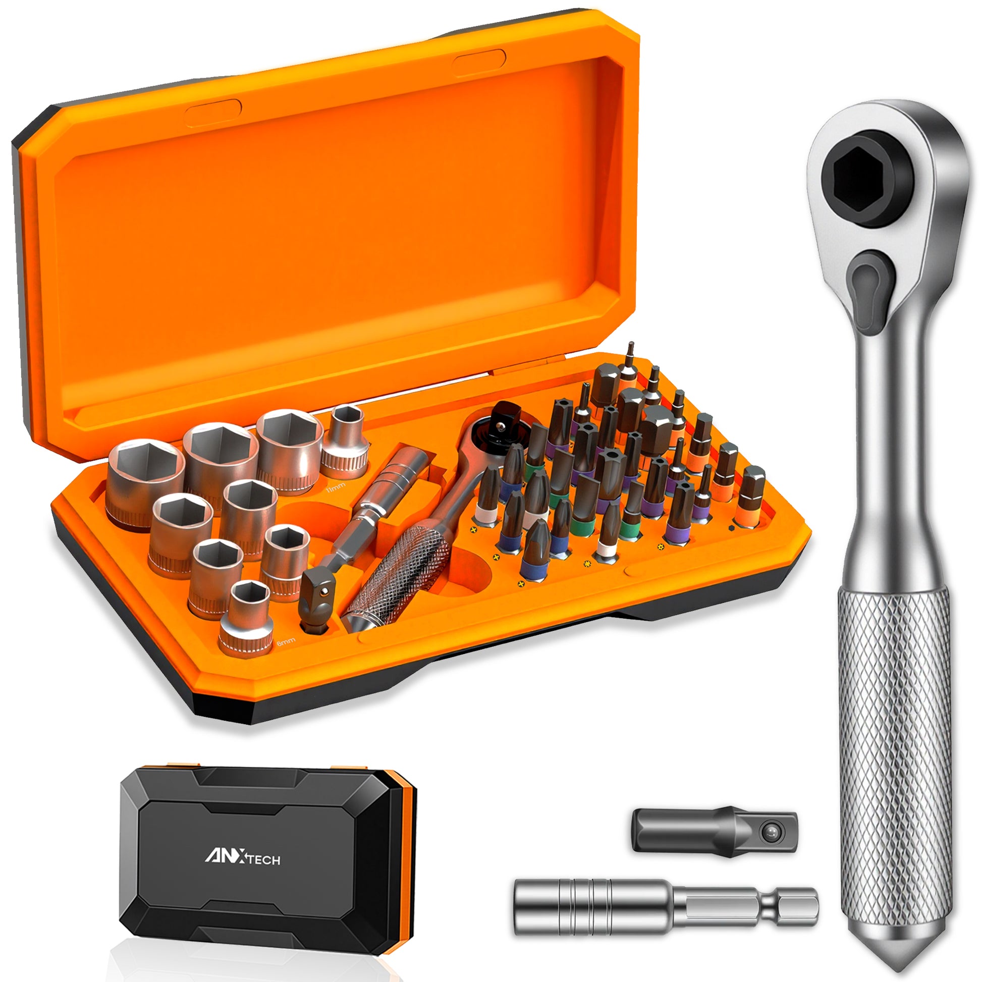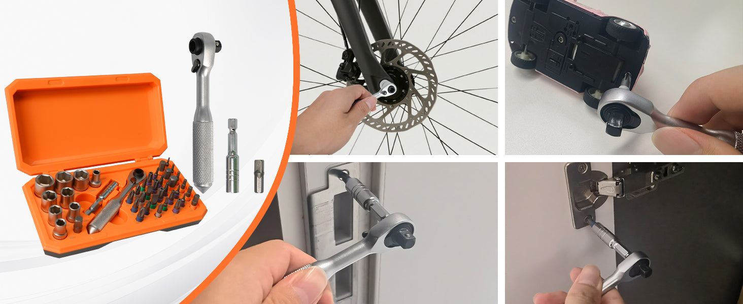 Compact and versatile—featuring 30 S2 steel bits, 9 CRV sockets, and a 3-mode ergonomic ratchet. Magnetic storage case, easy portability, and wide compatibility for bikes and home repairs.