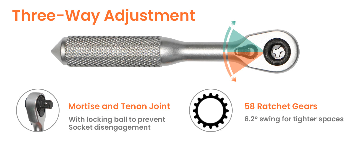 • Effort-Saving Ratchet Mechanism: Features a bidirectional ratchet with 72 fine teeth. Simply flick the switch to change direction and achieve up to 70N·m torque for fast, efficient tightening and loosening